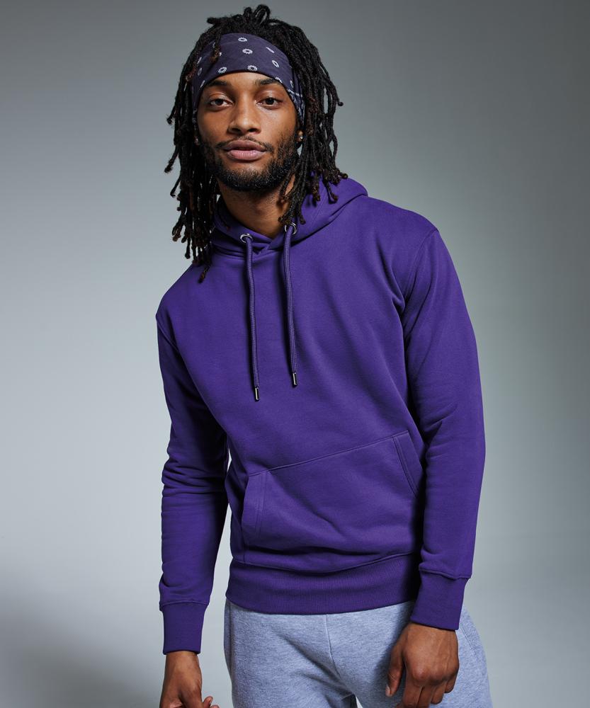 Twin-needling detailing creates a high quality finish. Cut and sew two by one ribbed cuffs and hem. Kangaroo pouch pocket. Self-coloured neck size label. Vegan certified. BSCI certified. SEDEX certified. WRAP certified.
